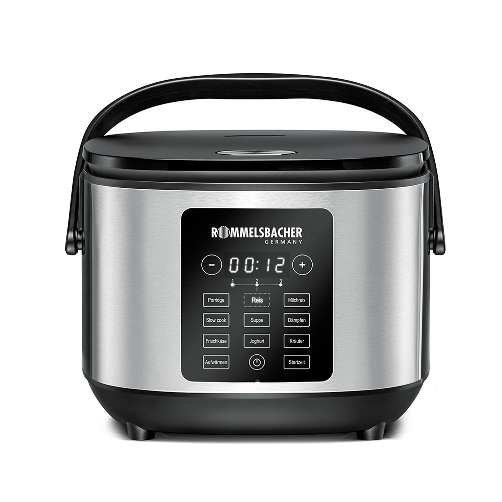 Multiriskokaren MRK 650 från ROMMELSBACHER kan mycket mer än bara ris! Tolv mångsidiga program gör det enkelt att tillaga ris, spannmål, soppor, risgrynsgröt och gröt – utan behov av konstant övervakning. Även slow cooking, ångmatlagning och yoghurt samt färskostberedning blir perfekt tack vare innovativ 3D-värmeteknologi och elektronisk temperaturkontroll.